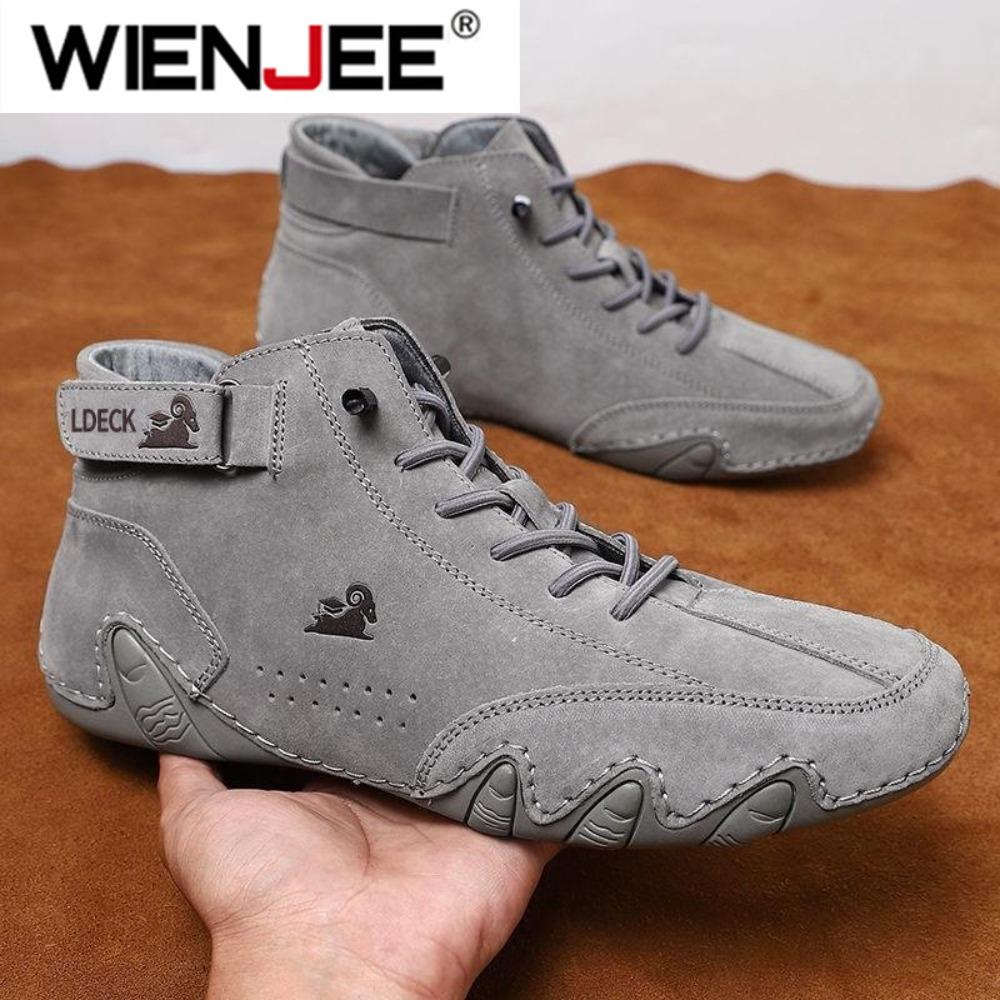 Herren Leder Freizeitschuhe Rutschfeste Walking Sportschuhe Handgefertigte Schuhe für Herren mit High Top Sneakers Masculino — günstig online bei Joom kaufen