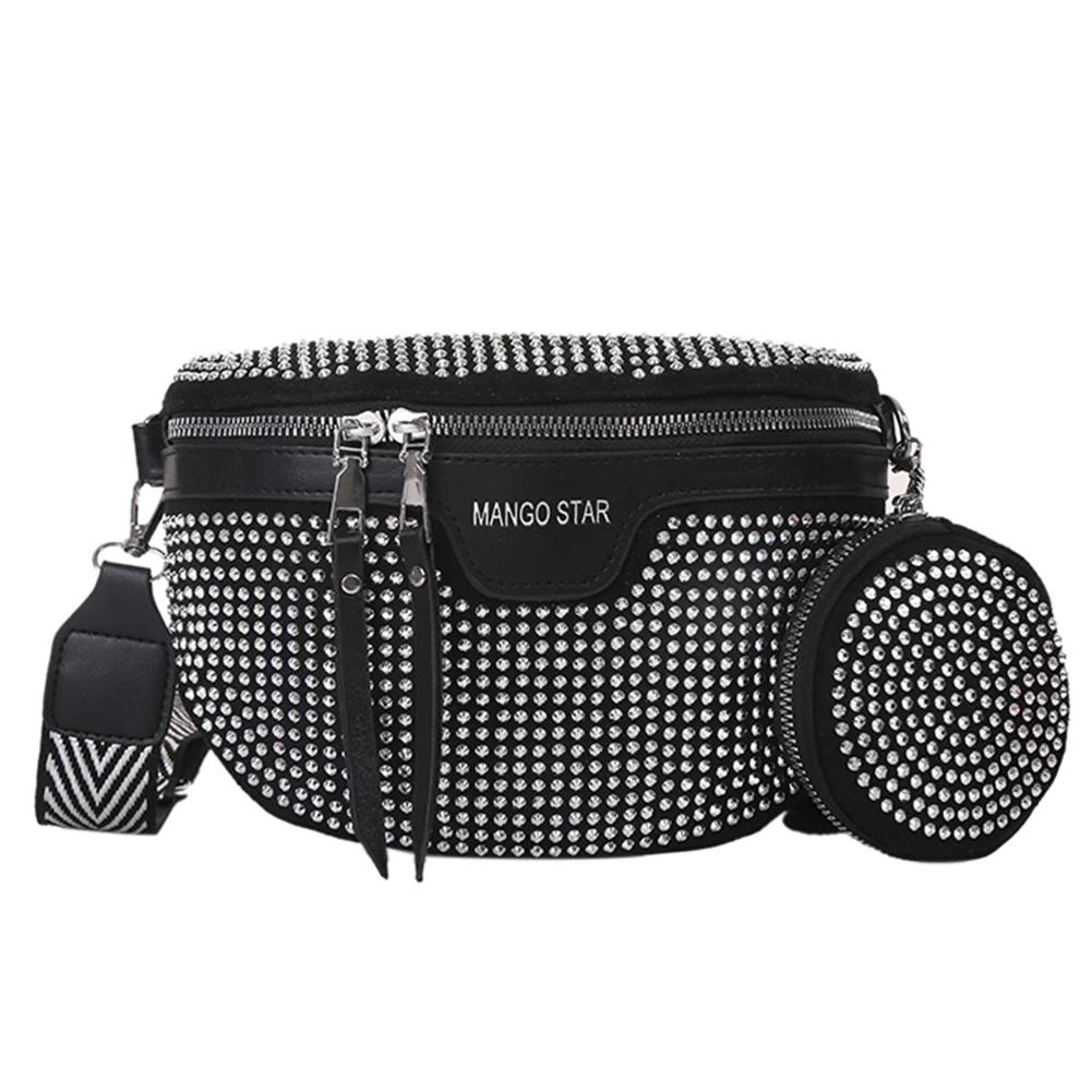 Fashion Rhinestone Waist Belt Bag Shoulder Crossbody PU Leather Chest Phone Pack Women Outdoor Business Traveling — günstig online bei Joom kaufen