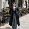 Neuer Herbst- und Winter-PU-Leder-Mantel für Damen, Lange über das Knie reichende Schlanke Windbreaker-Jacke mit Gürtel und Temperament-Mantel