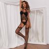 Damenunterwäsche, sexy Bodystocking-Bodysuit in Übergröße, Netzstoff, sinnliche Dessous, weibliche Spitze, florales Muster, ouvert, erotische Strümpfe
