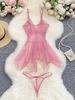 Sexy Lingerie Deep V Lace Chemise Women's Underwear Sensual Silk Soft Gown Fishscale Color Strapless Sleep Dress Erotic Clothing