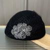 Autumn And Winter New Light Luxury Mesh Yarn Rhinestone Flower Bud Hat Retro Elegant Stewardess Hat Female Face Small Styling Top Hat