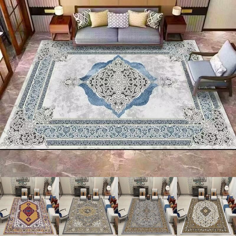 Classic Euro-American Foldable Carpet Thickened Washed Cotton Backing Ethnic Style Area Mat for Living Room Bedroom Home Decor