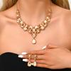 Wind Three-Piece Jewelry Premium Exaggerated Retro Alloy Rhinestone Earrings Necklace Bracelet Set