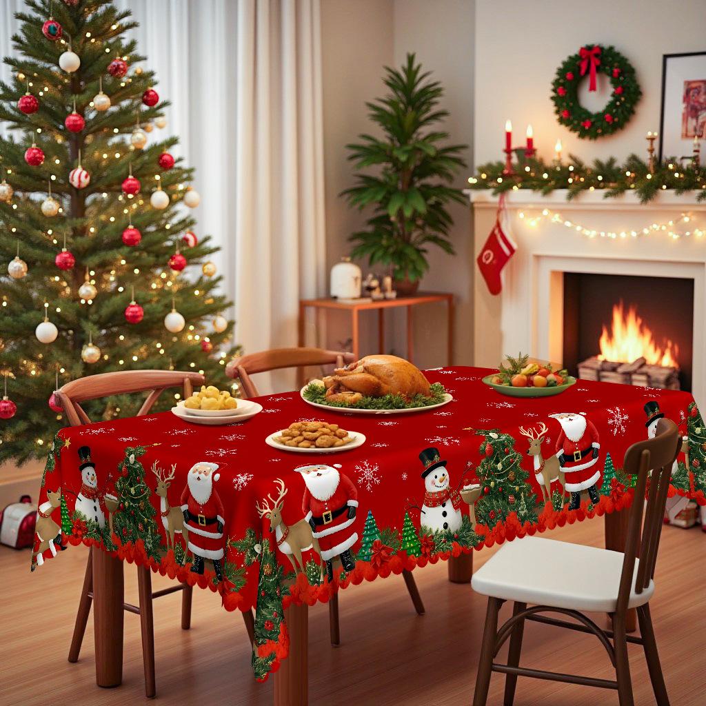 Christmas Themed Table Cloth, Santa Reindeer Snowman, Christmas Tree Waterproof Tablecloth Household Party Decoration Cloth