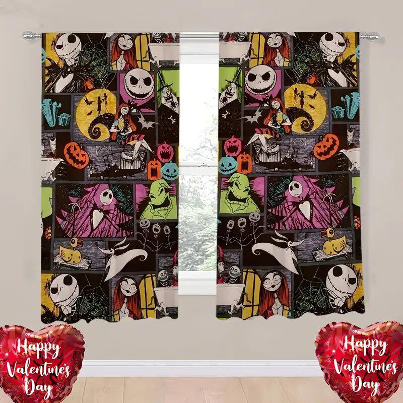 2 Stück - Vorweihnachtliche Vorhänge mit aufgedrucktem 'Christmas Nightmare'-Muster, Schlaufenaufhängung, Heimdekoration, Zimmerdekoration