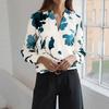 Frühlings- und Herbst-Neuheit, Elegantes und hochwertiges V-Ausschnitt Langarmshirt für Damen mit Pflanzendruck
