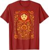 Matryoshka Doll Floral Print Graphic Tee Russian Nesting Folk Art Casual Cotton T-Shirt