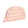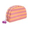Gestreifte Muschel Kosmetiktasche Canvas Reise Make-up Organizer Tragbare Niedliche Make-up Tasche mit Pompoms für Frauen Mädchen Toilettenartikel