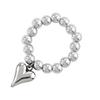 Vintage Handmade Love Heart Pendant Beaded Elastic String Rings for Women Girl Silver Color Bead Adjustable Ring Jewelry