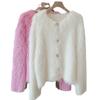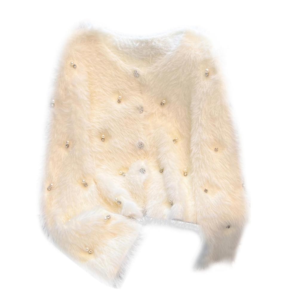 JIYUTOR Knit Cardigan with Fur and Fluffy Shaggy Fur with Loose Perfect for Formal Weddings Women's Pearls, Coat, V-Neck Buttons, Fit, (Free Size,