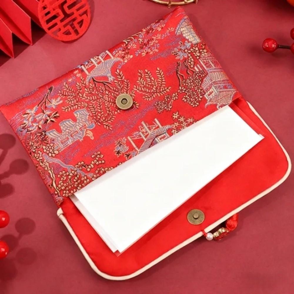 Glückwunschworte Brokat Rot Umschlag Stickerei Rote Taschen Große Kapazität Hongbao Geburtstagsparty