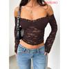 Y2K Sexy Langarm-T-Shirt Spitze Damen Ein Schulter Ausgeschnitten Schlankes Oberteil