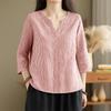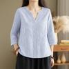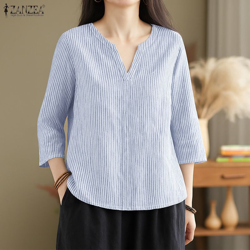 ZANZEA Damen Lässige Bluse mit V-Ausschnitt und 3/4-Ärmeln, lockere Streifen — günstig online bei Joom kaufen