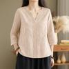 ZANZEA Lässige Bluse mit V-Ausschnitt und 3/4-Ärmeln für Damen