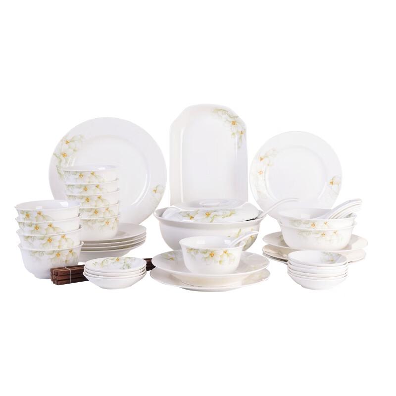 Aiyiresi 56-teiliges weißes Magnolien-Keramik-Geschirrset — günstig online bei Joom kaufen