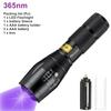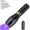 Zoom UV LED Flashlight 365nm 395nm Invisible Ink Marker Cat Dog Urine Tinea Ore Money Scorpion Fluorescence Light Use AAA 18650