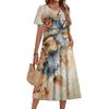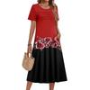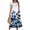 Damenkleid mit Blumenmuster, lässig und modisch, kurzärmelig, Rundhalsausschnitt