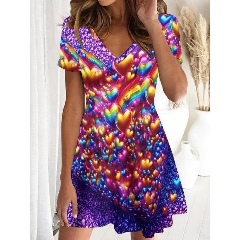 Großes Damenkleid mit durchgehendem Pfauenmuster, Modisches V-Ausschnitt-Kleid mit kurzen Ärmeln — günstig online bei Joom kaufen