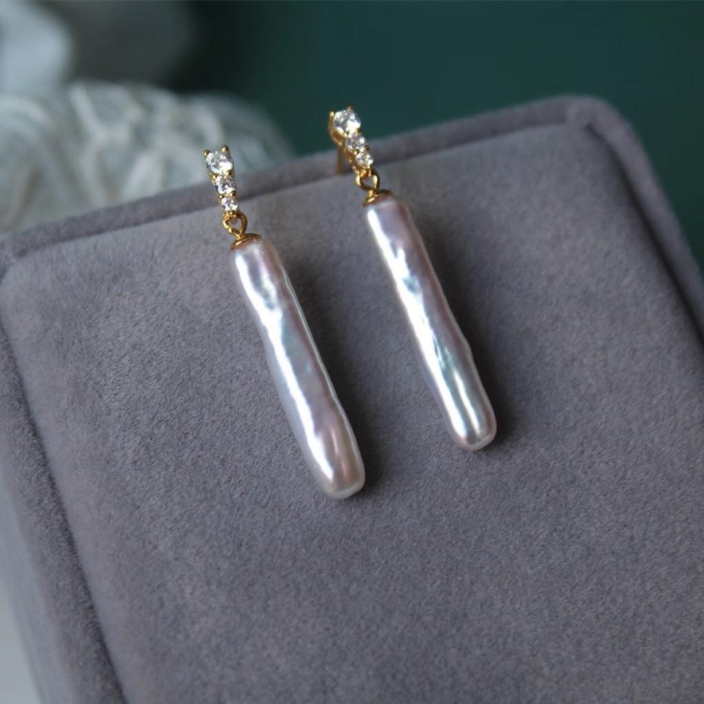 Lange natürliche Süßwasser-Barockperlen-Steckohrringe dünne Silbersteg-Ohrringe S925 Silbernadel Zirkon vergoldete Ohrringe schlicht — günstig online bei Joom kaufen