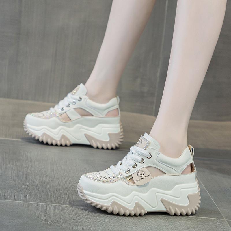 Sommer neue vielseitige dicke Sohle hohle Tasche Kopf Sandalen Damen lässige atmungsaktive kleine weiße Schuhe Muffinsohle erhöht