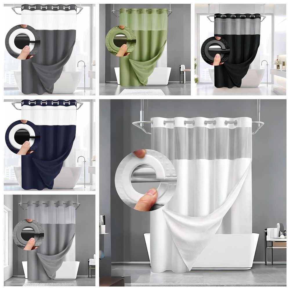 Mit durchsichtigem Oberfenster Hakenloser Duschvorhang Abnehmbarer Badezimmervorhang Badezimmer — günstig online bei Joom kaufen