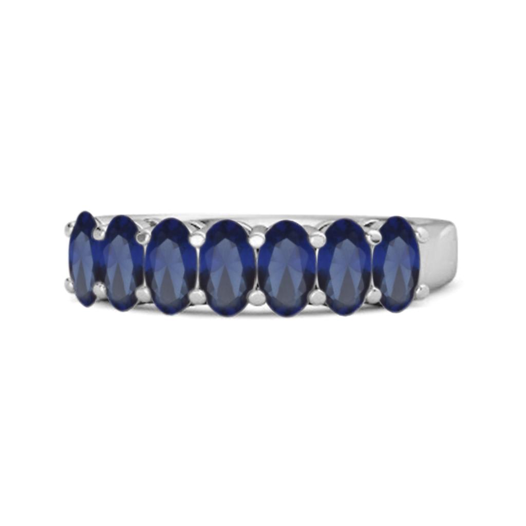 Blauer Saphir Ovaler Halb-Ewigkeitsring - 925 Sterlingsilber