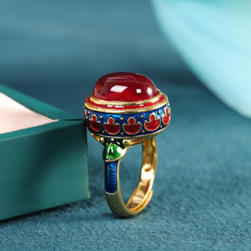 Original antiker Goldschmiedekunst natürlicher Karneol Ringe für Frauen Blume Emaille Nationaler Stil Leichter Luxus Hochzeit — günstig online bei Joom kaufen