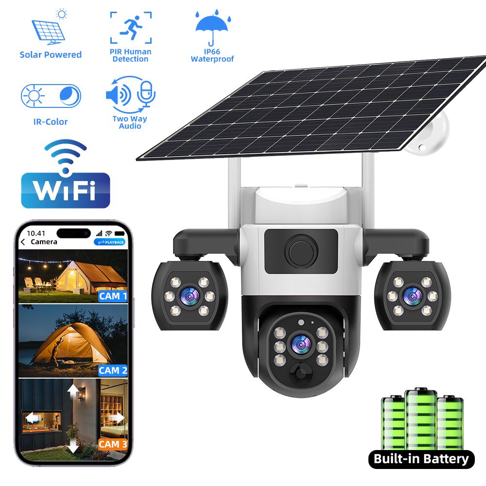 V380 Pro WiFi Solar Kamera Außen Dreifachlinse PIR Personenerkennung Nachtsicht PTZ Kabellose IP-Kameras CCTV Sicherheitschutz — günstig online bei Joom kaufen