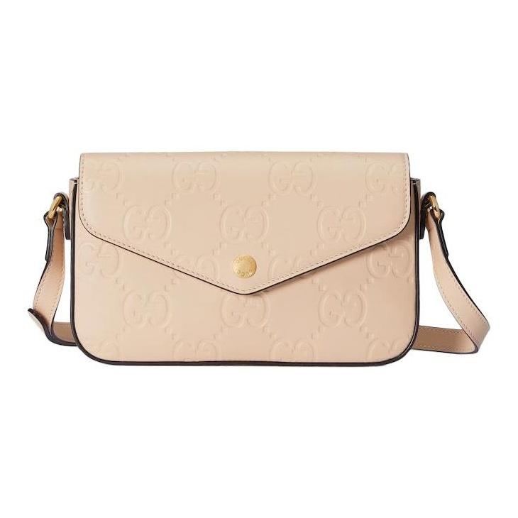 GUCCI double G logo adjustable shoulder strap magnetic buckle opening and closing leather messenger bag women's light beige — günstig online bei Joom kaufen