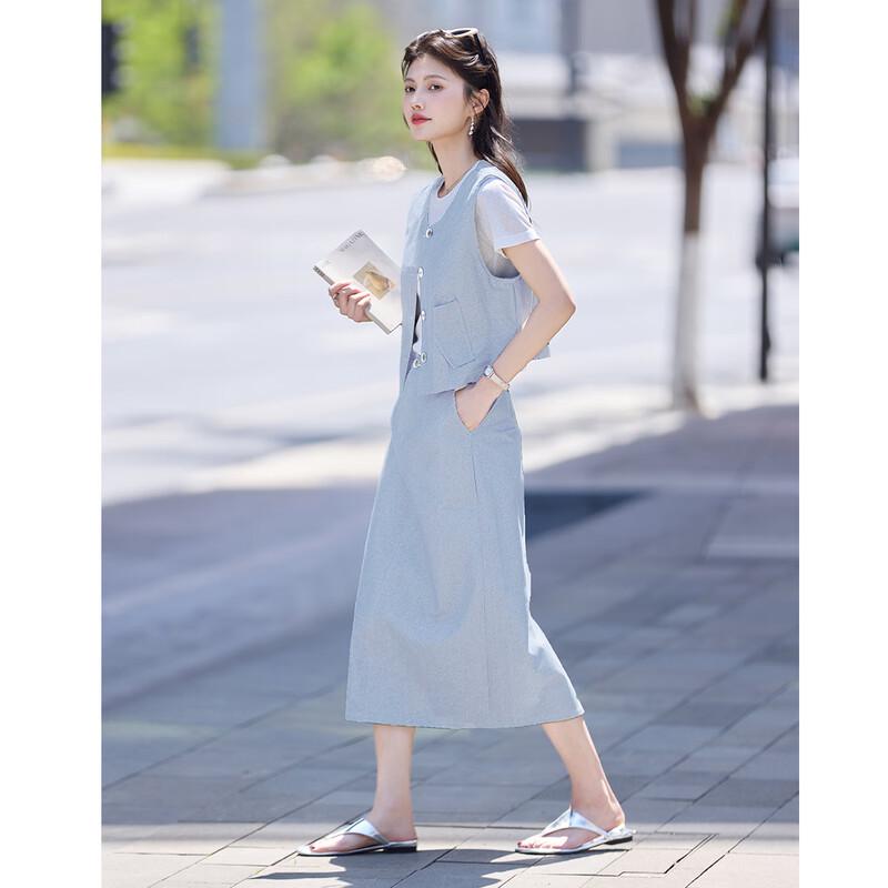Damen Sommer 3-teiliges Set: Denim-Weste, Baumwoll-T-Shirt & Rock — günstig online bei Joom kaufen