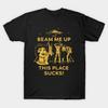 Herren Schwarzes T-Shirt mit Aufdruck Beam Me Up This Place Sucks Kein-Schnitt-Transferpapier Druck Baumwoll-T-Shirt