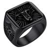 Big Signet Rings for Man Norse Viking Runes Valknut Wolf Head Triquetra Onyx Agate Size 7-14 Jewelry Gift for Him