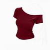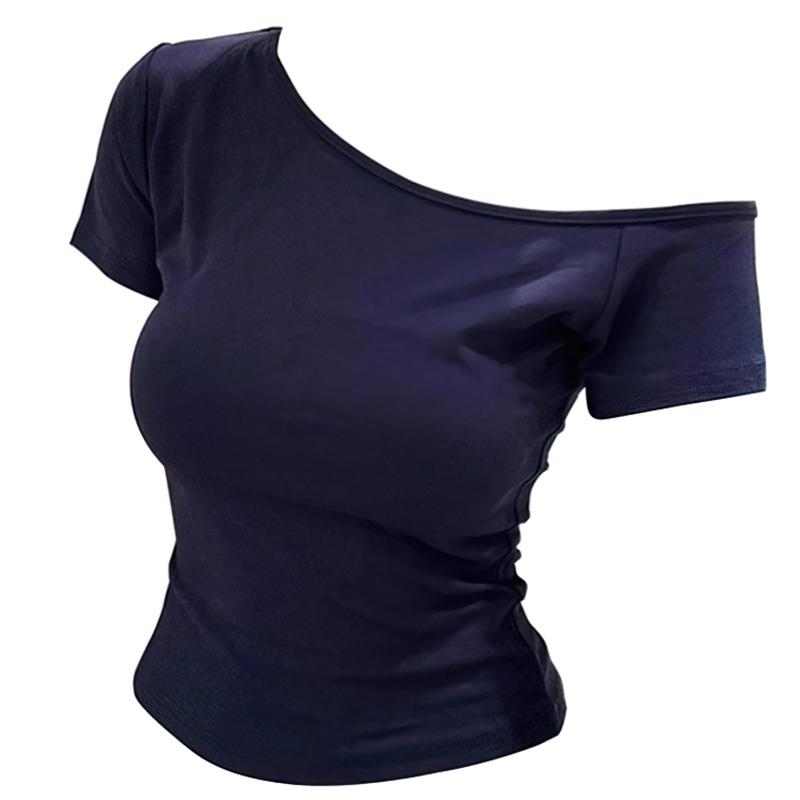 Rippstrick Baumwolle Sommer Off-Shoulder Damen Slim Fit Body Sommer Kurzarm T-Shirt Damen Sexy Basic T-Shirts Koreanischer Chic — günstig online bei Joom kaufen