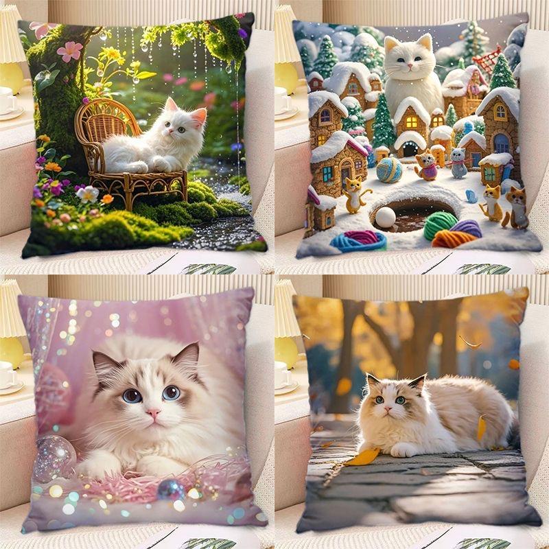 Home Decor Cute Cats in Fantasy Scenes Throw Pillow Covers Pattern Cushion Cover Suitable for Sofa Bedroom Car Pillow Cover — günstig online bei Joom kaufen