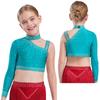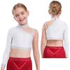 Kinder Mädchen Tanzoberteil Funkelnde Strasssteine Crop Top, Einzigartiges unregelmäßiges Schulterdesign für Bühnenauftritte & Tanzwettbewerbe
