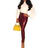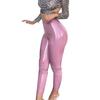 Damen Herbst Winter Dehnbare Kunstleder Lange Hosen Hohe Taille Skinny Hosen