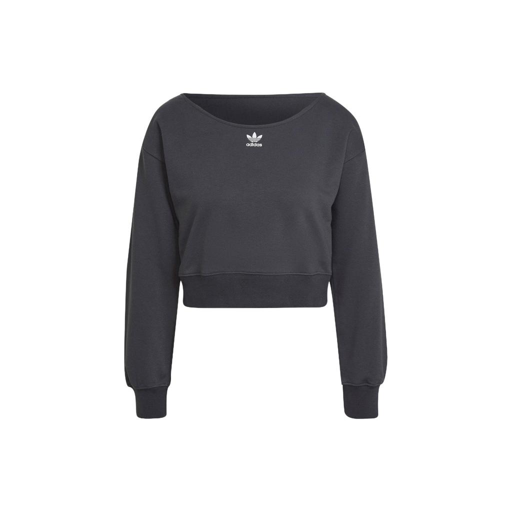Adidas Originals Slouchy Crew Solid Logo Short Sports Round Neck Pullover Sweatshirt Women sweatshirt Gray HU1647