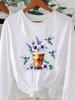 (Asiatische Größe) Langarm T-Shirt Tee Rundhals Aufdruck Herbst Winter Frühling Damen Trend Blumen Trend Kleidung Lässig Mode Oberteil Grafik T-Shirts