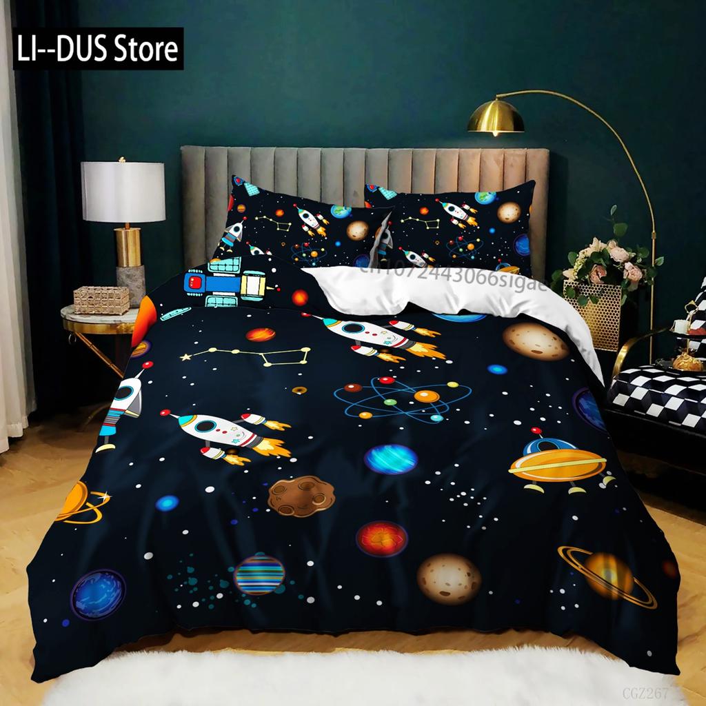 Bettbezug mit Raumschiffen für Jungen und Kinder, Astronomie-Bettwäscheset aus Mikrofaser, Weltraum-Abenteuer, farbenfroher Raumschiff-Bettbezug für Kingsize-Bett — günstig online bei Joom kaufen