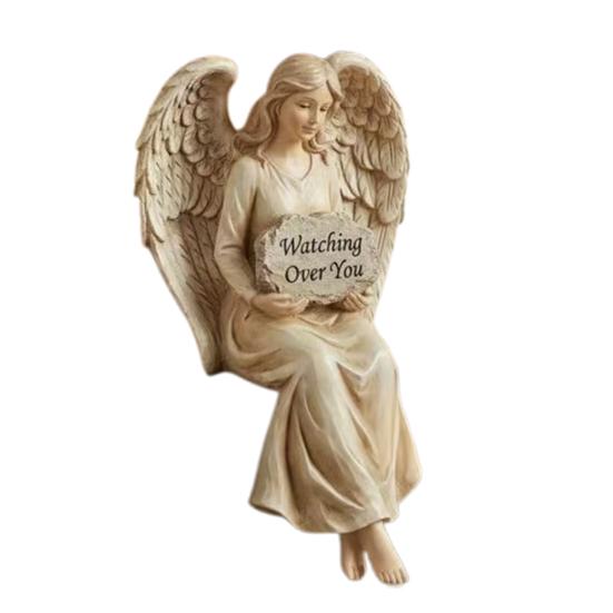 Schutzengel Regal-Sitzer Passt auf dich auf Engelsfigur Handbemalt Sitzender Engel Harzstatue Skulptur Heim- und Bürodekoration