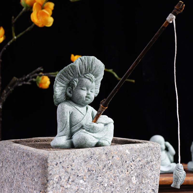 Blauer Sandstein Mini Mönch Skulptur, Desktop Dekoration für Wohnzimmer, Bücherregal, Eingang und Heimdekor — günstig online bei Joom kaufen