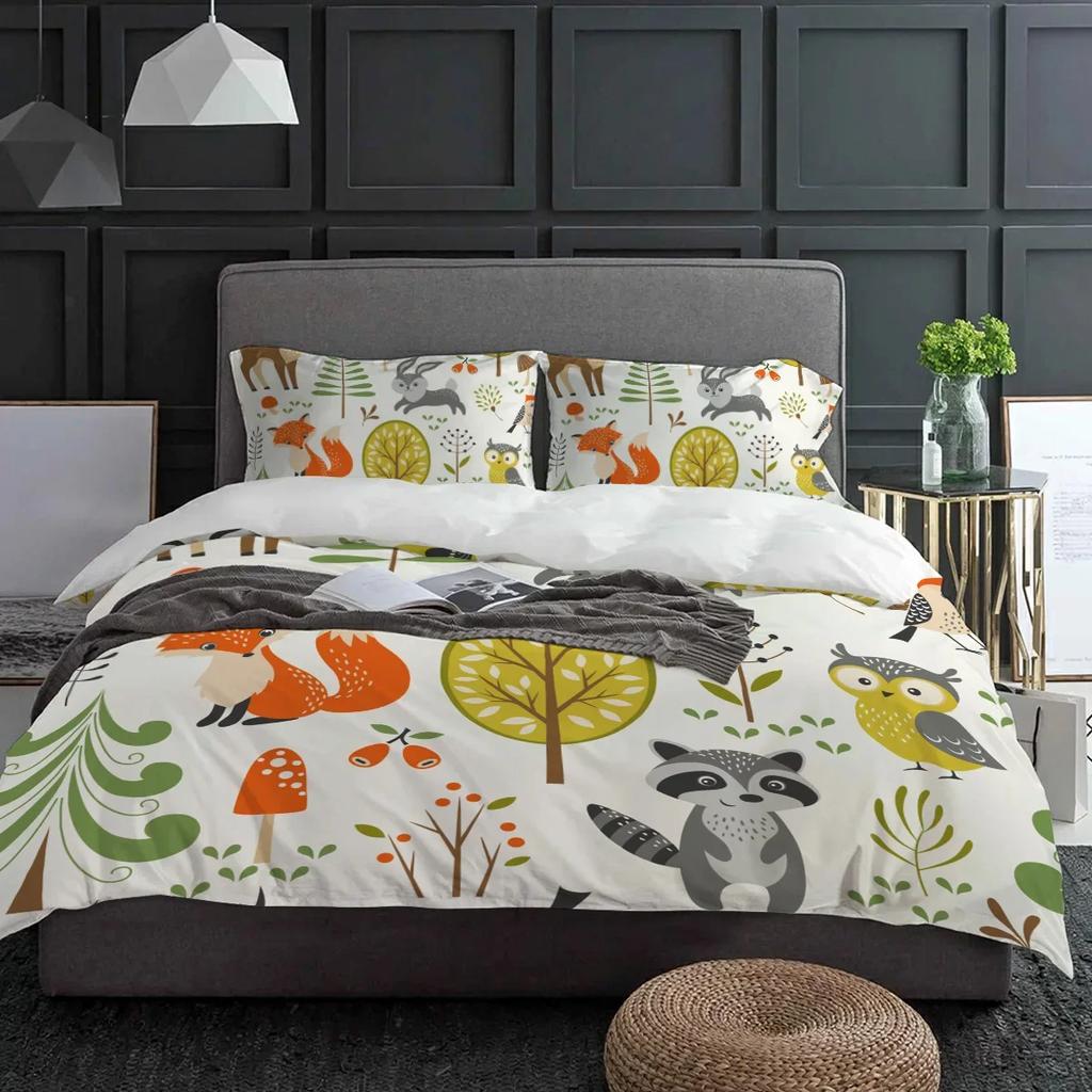 Wald Cartoon Tiere Welt Fuchs Hase Eule Bettwäsche Set 3tlg Bettbezug Kissenbezug Steppdeckenbezug Doppelbett Set Heimtextil — günstig online bei Joom kaufen