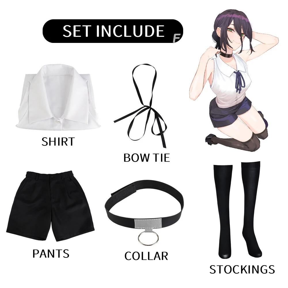 Reze Cosplay Kostüm Chainsaw Man Outfits Blauer Anzug Hemd Krawatte Kurz Halsring Frauen Anime Uniform Halloween — günstig online bei Joom kaufen