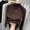 Half Turtleneck Base Blouse for Women In Autumn and Winter Double-sided Fur Plush Thickened Medium Collar Long Sleeve T-style Top