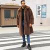 Herren Braun Kunstpelz Langer Mantel Reverskragen Oversize Warme Winterjacke