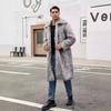 Herren Grau Kunstpelz Trenchcoat Revers Mittellang Warmer Wintermantel