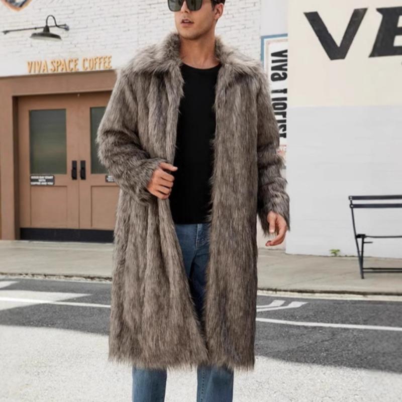 Herren Grau Kunstpelz Trenchcoat Revers Mittellang Warmer Wintermantel — günstig online bei Joom kaufen