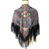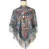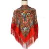 Retro Style Ukrainian Fringed Shawl Russian Floral Print Square Scarf Babushka Bandana Handkerchief Female Head Wraps