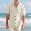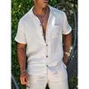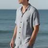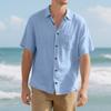 Herren locker lässig einfarbig Leinen Kurzarm Hemd mit Knöpfen und Brusttasche